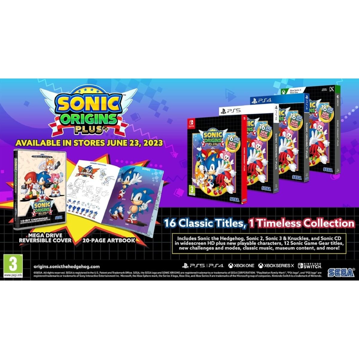 Sonic Origins Plus brings you the ultimate Sonic the Hedgehog collection with 16 classic titles, including 12 Sonic Game Gear games. Whether you’re reliving nostalgic moments or experiencing these iconic adventures for the first time, this is the definitive way to play! Featuring new playable characters and modes, this collection is a must-have for any Sonic fan.